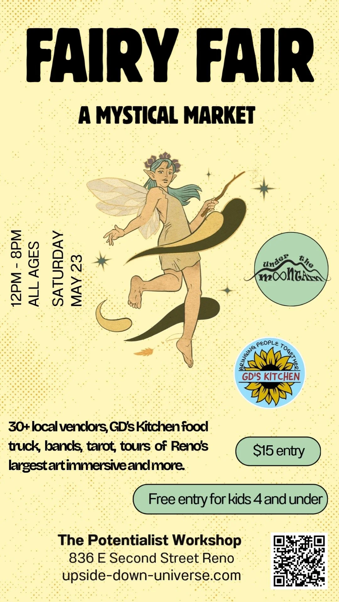 Join us for our May Fairy Fair, a mystical market featuring over 30 local vendors, GD's kitchen food truck, a bar, live music, tarot, tours of our 20,000 sqft immersive art exhibit and so much more. Vendors will be inside the art immersive and outside in the sculpture garden! 🧚🌿☀️🌸